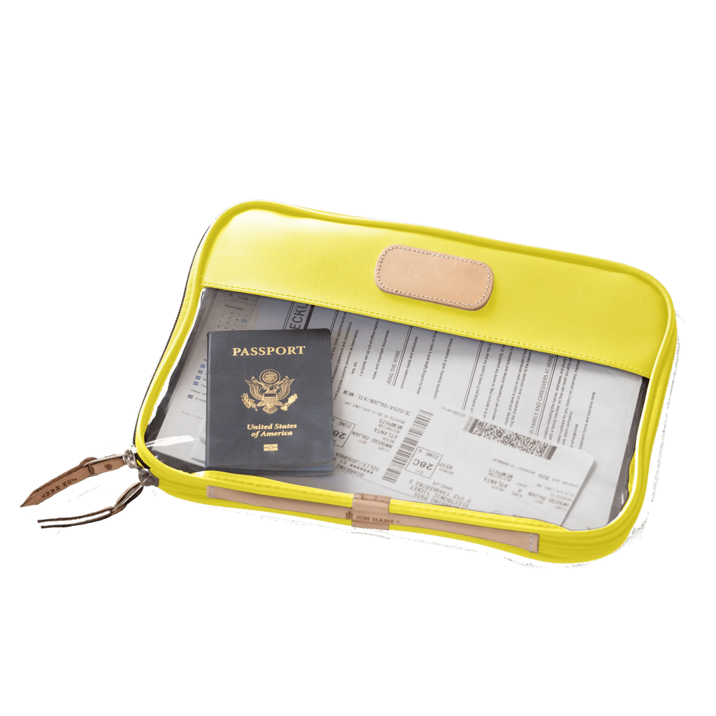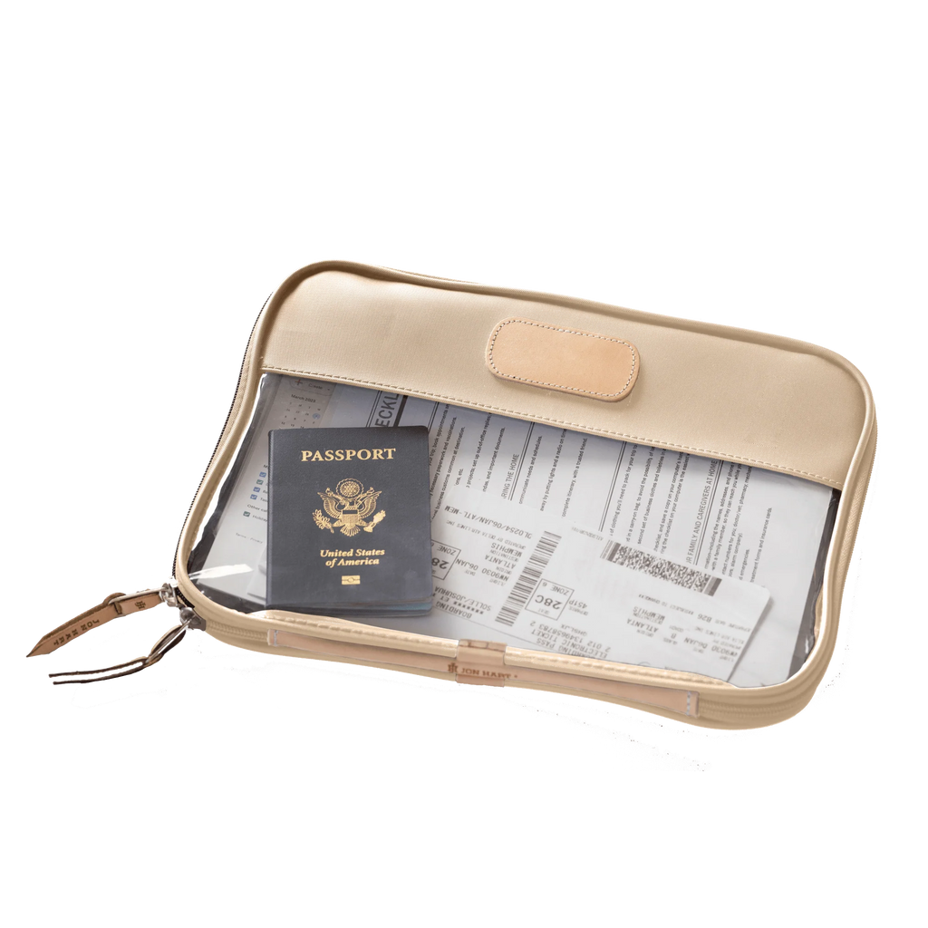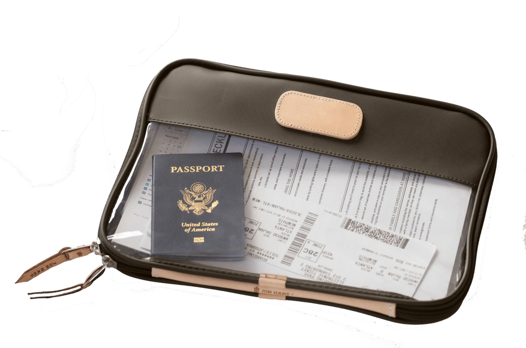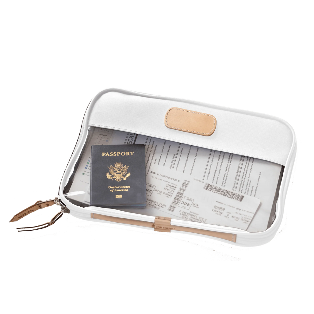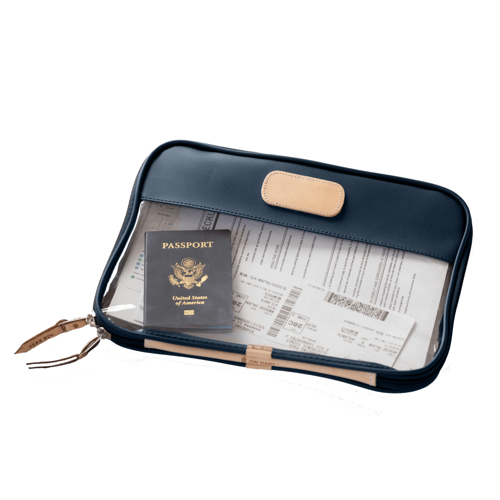 Leave your worries behind & your stress in the folio. The Clear Folio keeps you organized at work, while traveling and even just around the house! It keeps full sized papers, notebooks, important documents and so much more protected and organized. Also comes in Colored Leather & the JH Cotton Canvas.