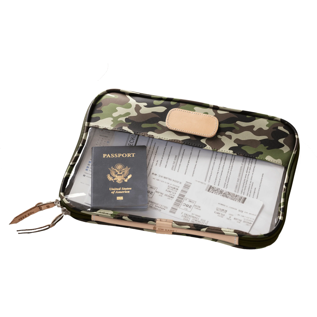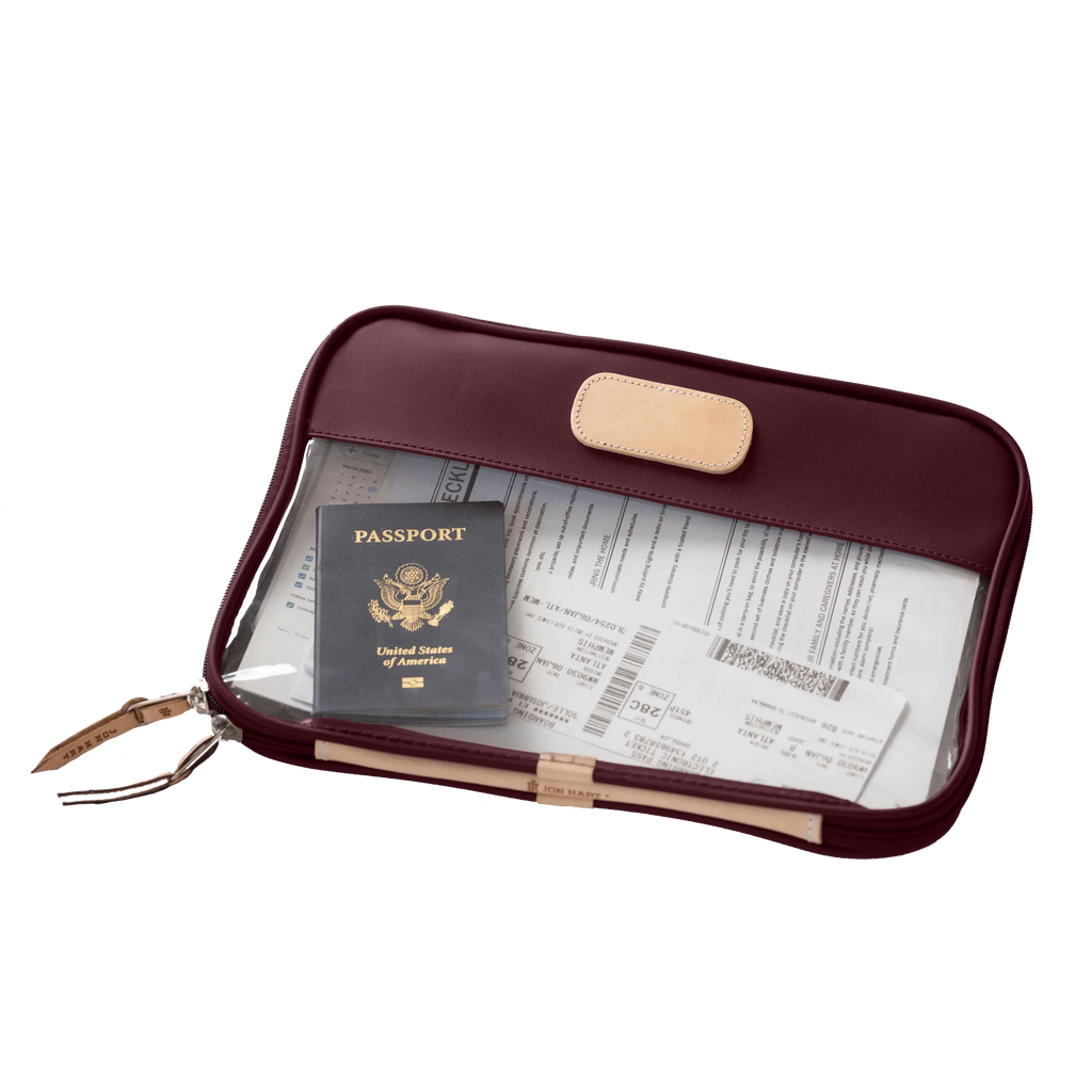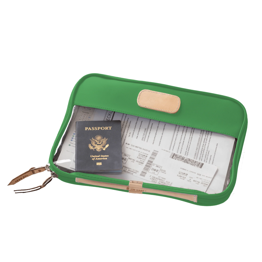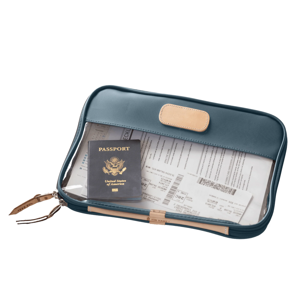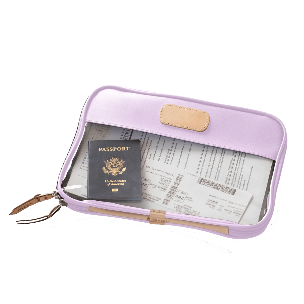 Leave your worries behind & your stress in the folio. The Clear Folio keeps you organized at work, while traveling and even just around the house! It keeps full sized papers, notebooks, important documents and so much more protected and organized. Also comes in Colored Leather & the JH Cotton Canvas.
